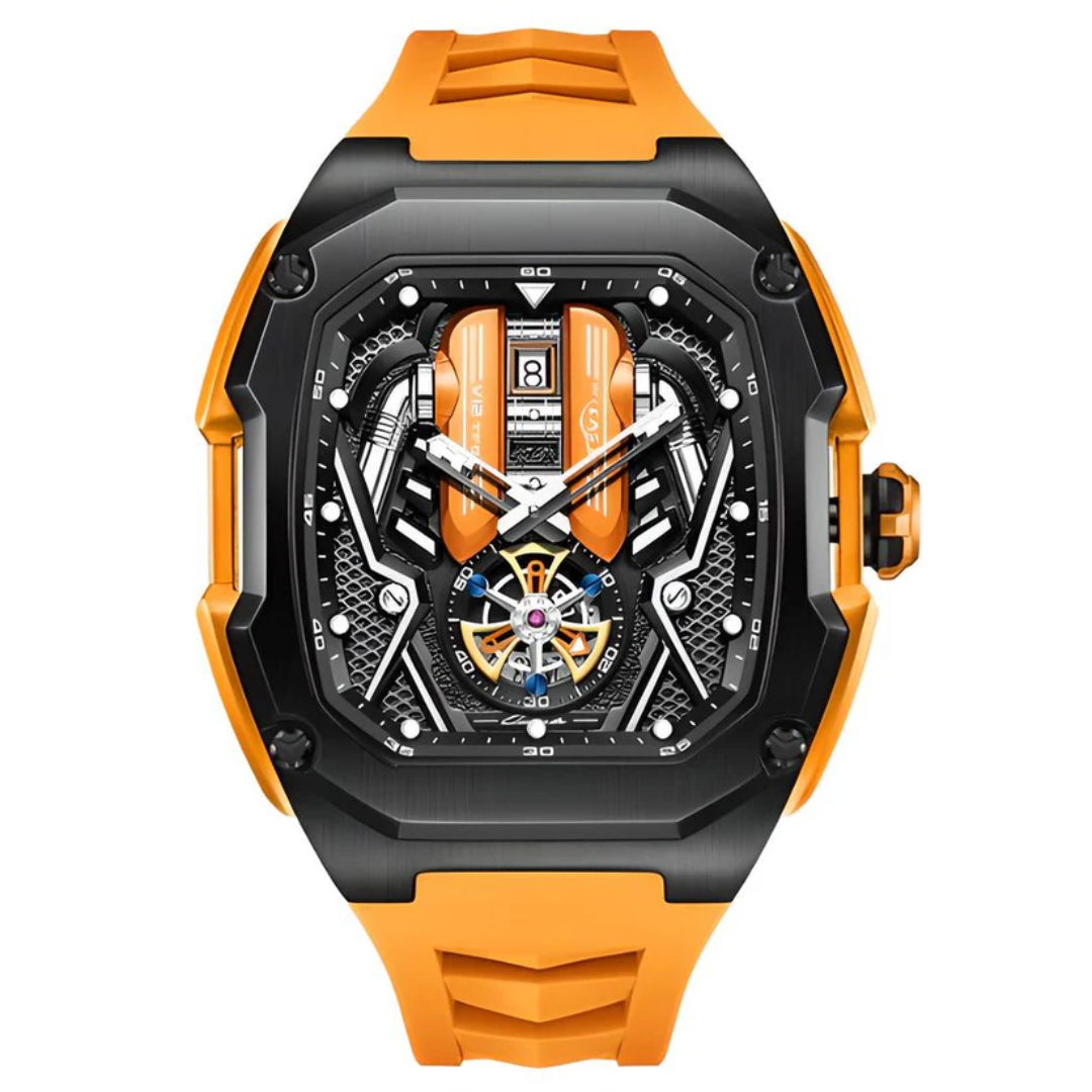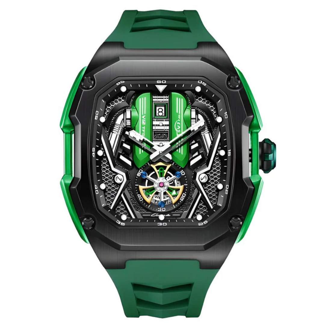 Built for those who crave performance and power, this watch takes inspiration directly from the iconic V12 engine. With its bold 53 mm case diameter and reinforced stainless steel edges, this timepiece doesn’t just stand out, it dominates.